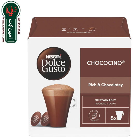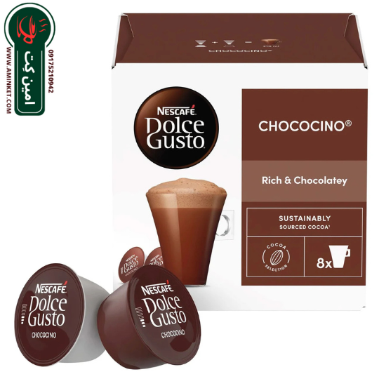 کپسول Chococino از سری نوشیدنیهای محبوب Nescafé Dolce Gusto، یک تجربهی شکلات داغ غلیظ، خامهای و غنی است که با استفاده از پودر شیر، شکلات مرغوب و کاکائوی تهیهشده از منابع پایدار (Sustainably Sourced Cocoa) تولید شده است.