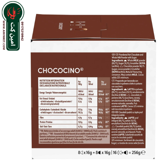 | مواد تشکیلدهنده | پودر شیر کامل، شکر، پودر کاکائو، امولسیفایر سویا، طعمدهنده طبیعی، نمک |