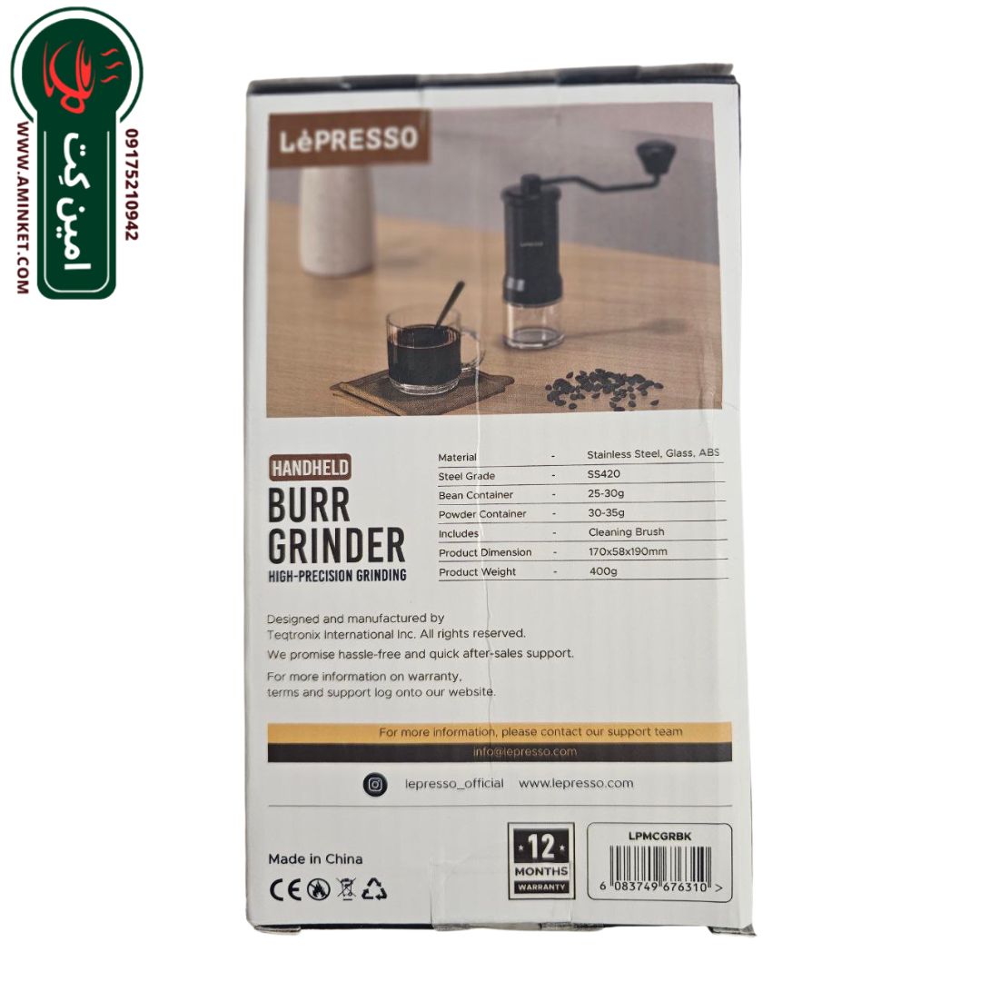 آسیاب قهوه دستی لپرسو مدل Handheld Burr Grinder با تیغه مخروطی استیل